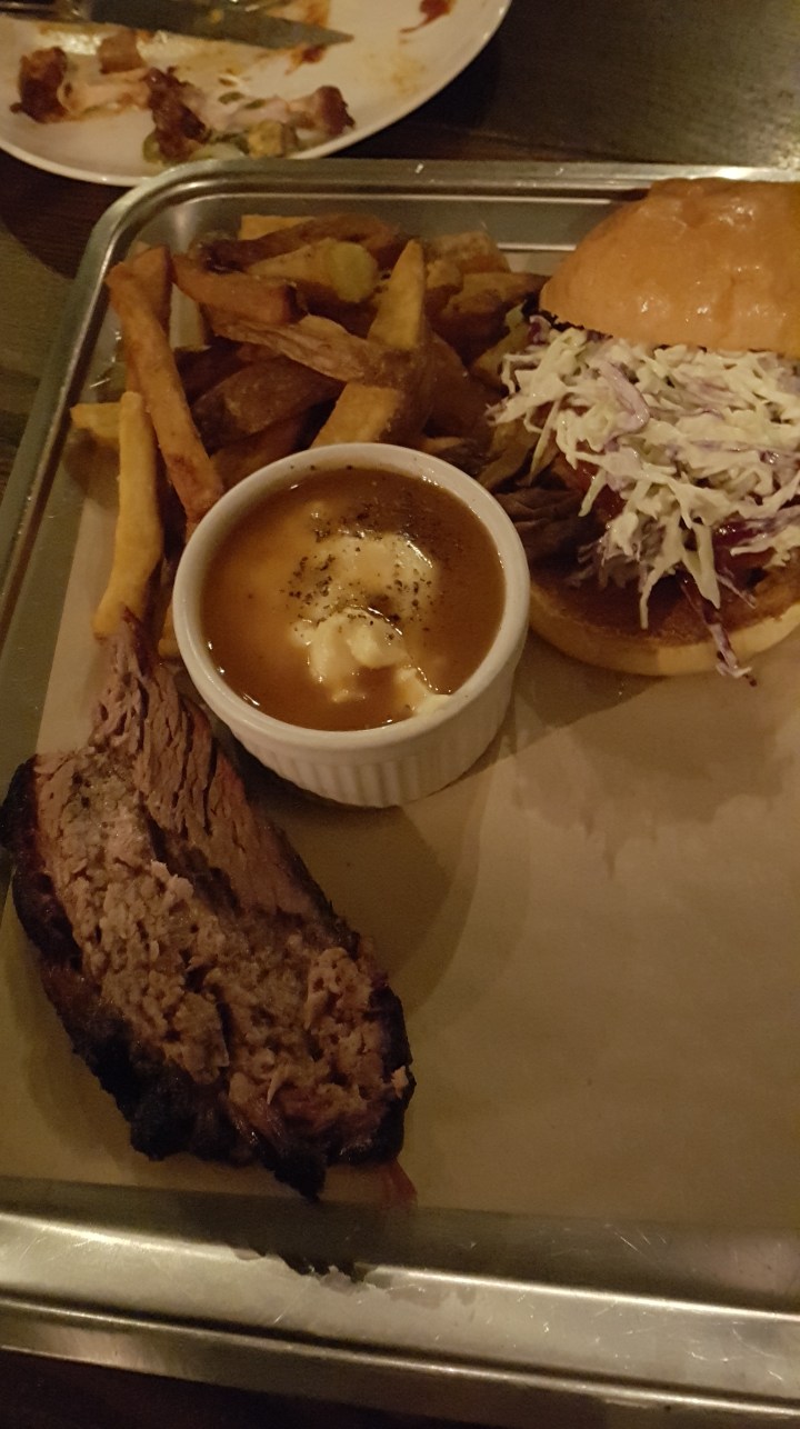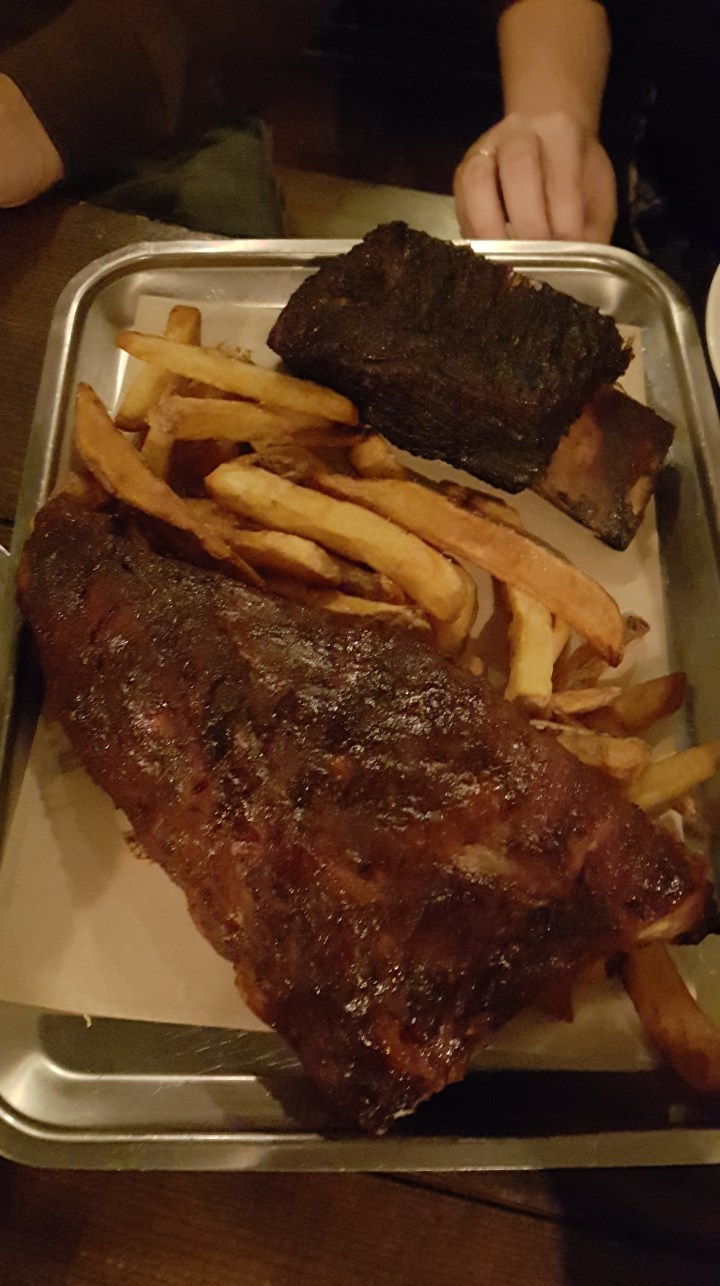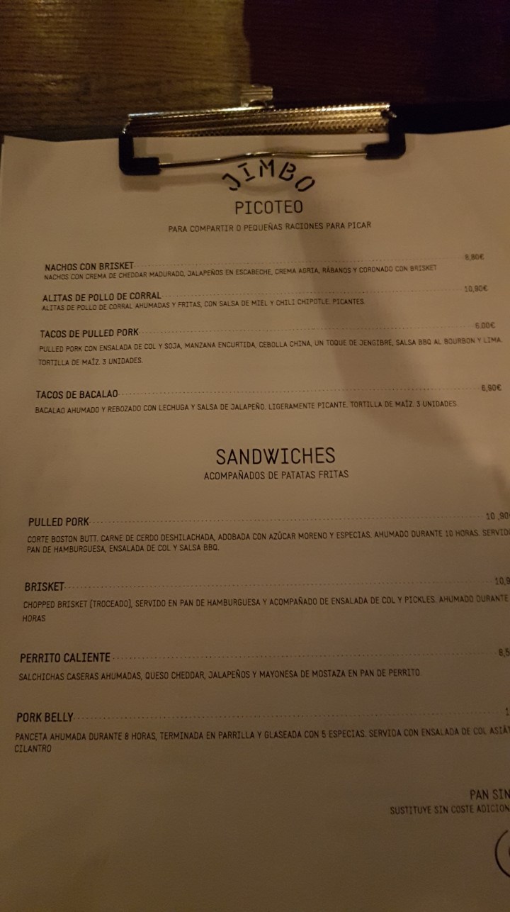 Su oferta: una larga lista de cervezas artesanales, muchas americanas. Refrescos americanos como el Cherry Coke, entrantes como nachos o alitas extra picantes, y una larga lista de sandwichs y bandejas de carne. Esto último es el producto estrella del restaurante.