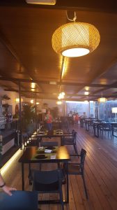 Bueno, seguimos con sorpresas en nuestro paraíso gaditano. En solo un mes este espacio que ahora es un impresionante restaurante y bar de copas estaba vacío, y como por arte de magia, se hizo la luz. En este caso han desplegado medios, y dinerillo para crear un espacio precioso, forrado en madera y césped artificial, con escenario, música en vivo, palapas, cocktails, restaurante, sillones para ver el atardecer, showcocking, fiesta, conciertos, etc…etc…